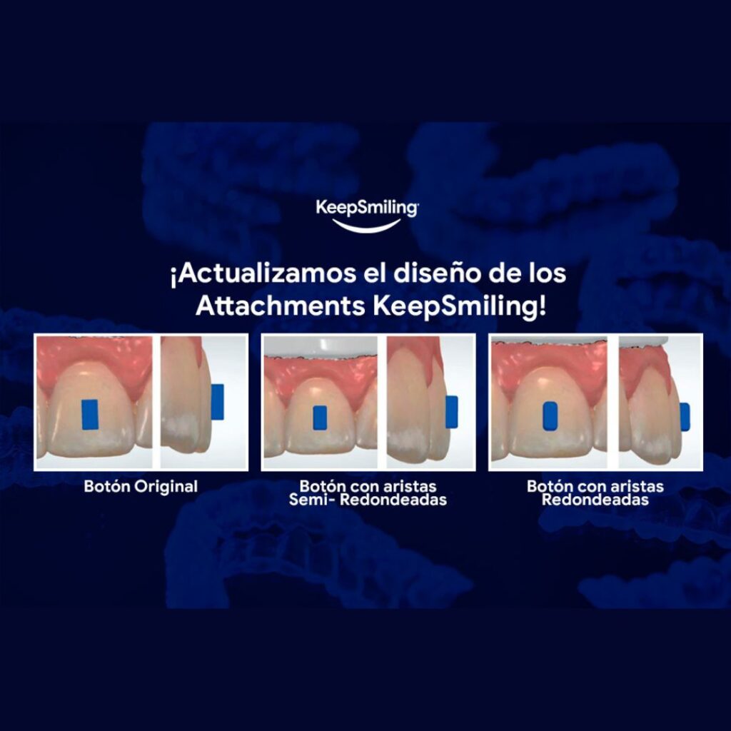 El rediseño de Attachments fue un proyecto que se desarrolló entre las áreas de “Mejora continua”, “Diseño 3D” y “Ortodoncia” para continuar optimizando la forma y funcionalidad de los alineadores KeepSmiling.